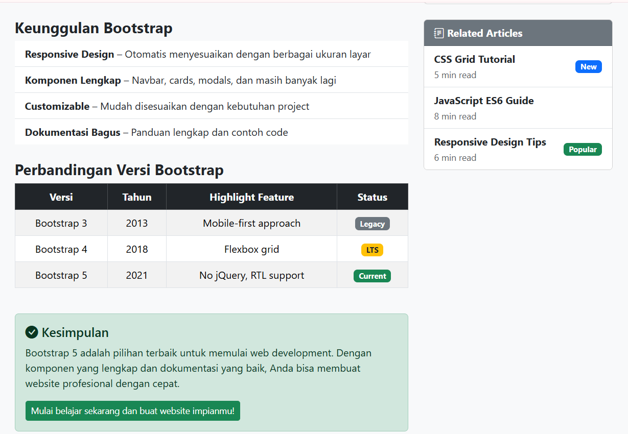 Landing page clean berbasis Bootstrap dengan layout responsif.